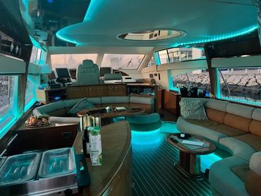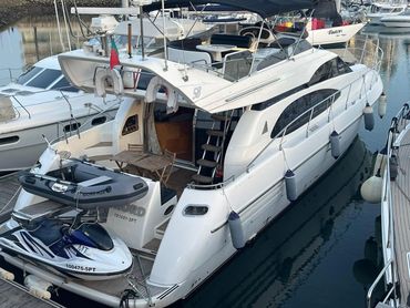 This is an exceptionally well-presented vessel with an array of additional features such as; bow thruster, stern thruster, flybridge control station, Air conditioning throughout the interior, water maker, tender with outboard engine, hydraulic passerelle, fridge, freezer, washing machine and a 65 inch LED television.