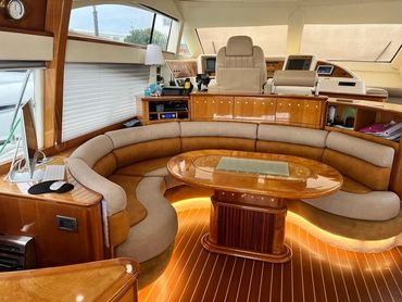 The saloon area of this vessel is truly exquisite with an impeccable wooden finish on all surfaces and leather seating throughout. The helm control position is well equipped and is in-keeping with the rest of the vessels interior style. This vessel boasts three spacious double cabins, all with en-suite toilet and wash facilities.