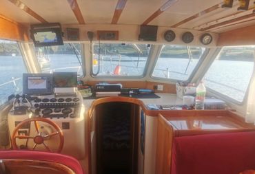 A high-speed cruiser / sport fishing boat. The Rodman 11.20 is a robust vessel perfect for summer cruising or all year round angling. This vessel has a spacious aft deck with bathing platform, deck wash and multiple fishing rod holders. The interior of the vessel consists of diner style lounge seating, galley table and a hob for cooking. Also found inside the vessel is a spacious double cabin, toilet and wash basin. The vessel has a well-equipped helm control position with a chart plotter and echo sounder. This vessel also has a flybridge for improved visibility when navigating.
